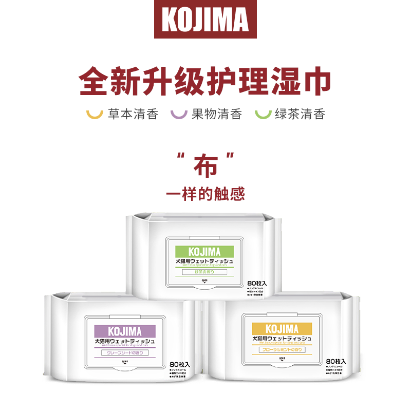 新款香型日本KOJIMA宠物湿巾猫咪去泪痕湿巾狗湿巾清洁用品祛味【报价 - 猫 果 物